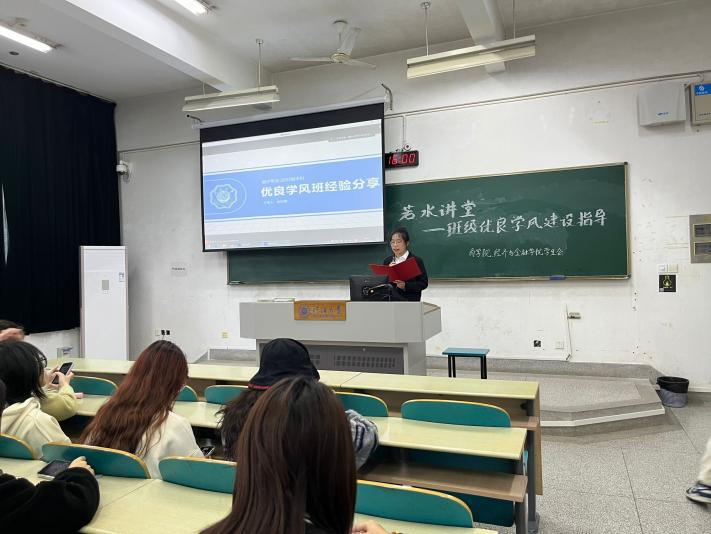 为加强学院学风建设,进一步营造良好的学习氛围,同时帮助2023级班委更好地开展学风、班风建设活动,推动班级、年级的学风建设,2024年3月22日下午4点,商学院、91短视频 学生会学习部在江宁校区举办“若水讲堂——班级优良学风建设指导”活动,邀请优良学风班班级负责人赵淑雅、刘坤为商学院、91短视频 2023级班委分享班级建设经验。