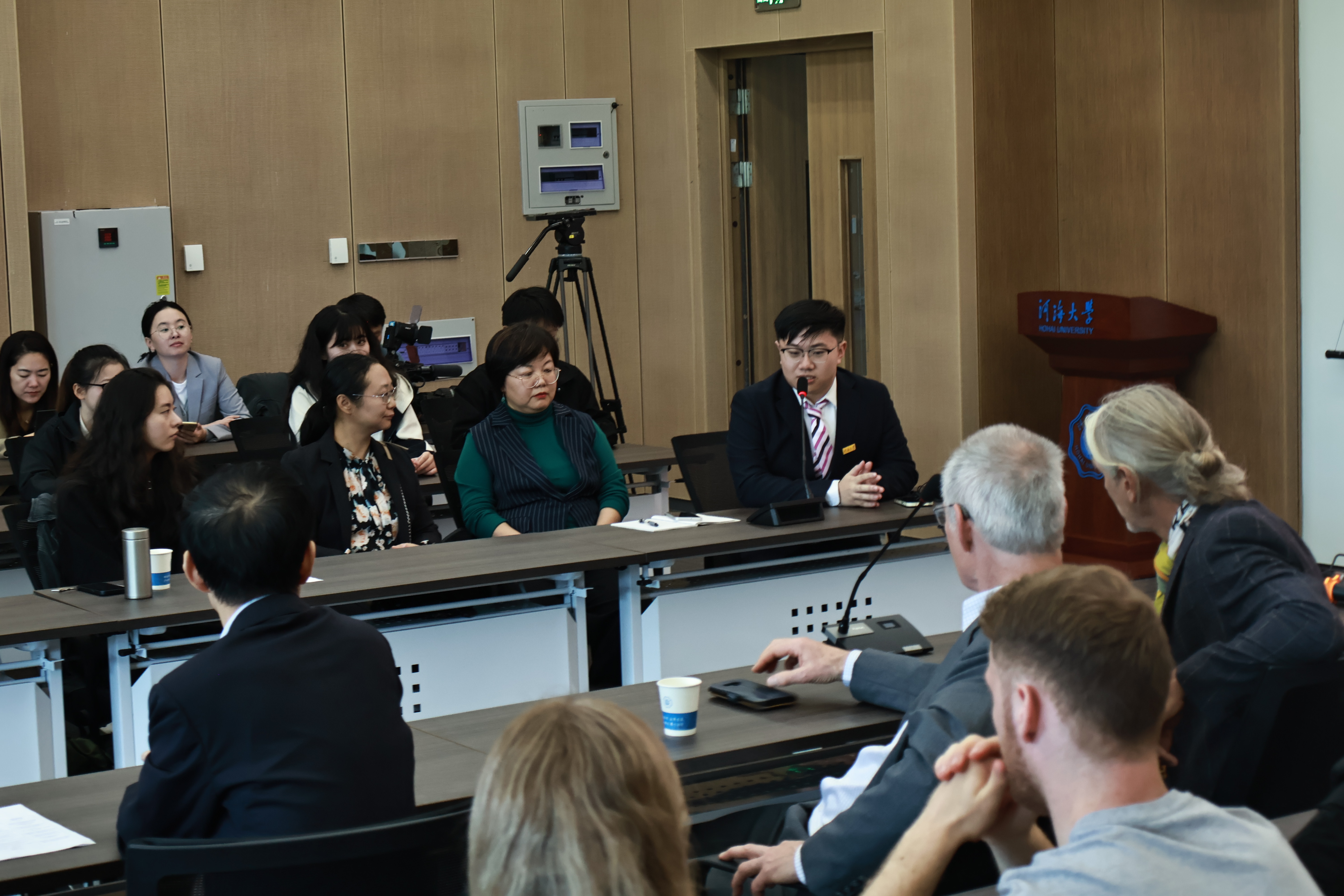德国斯图加特双元制大学各位师生在91短视频 老师、学生代表的陪同下参观了校园和图书馆,重点了解了91短视频 的办学情况,学院历史、学科建设、师资力量、专业培养方案等情况。