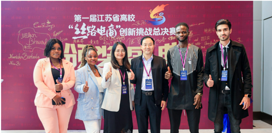 在决赛环节,留学生案例赛道中,国际经济与贸易本科留学生团队李德生、凯特、彭仁翃、陈森、波迪及林光明同学的作品《丝路河海,海纳百川——以跨境电商为桥梁,扬帆起航新丝路》和国际贸易学硕士留学生团队邓氏清娥、劳伦斯、田灵、哈明及吗古丹同学的作品《丝路新征程,电商助远航——走进天合光能东南亚之旅》获二等奖。