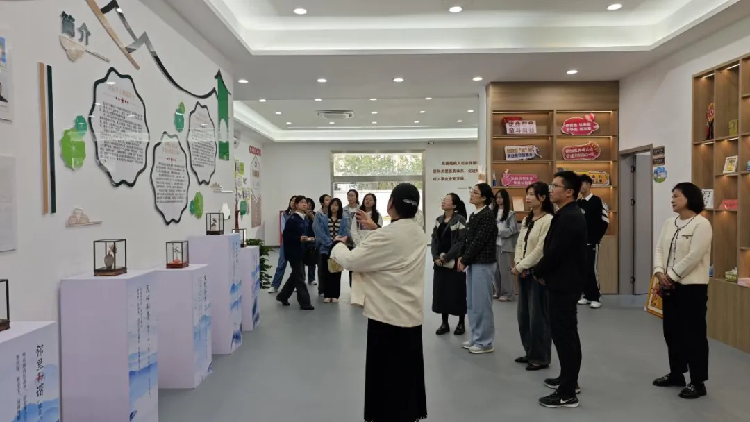 金坛区汉服文化协会2018年成立,致力于汉服文化的传承与发展,是常州市4A级社会团体、江苏省优秀群众文化团队。汉服文化协会会长姚海霞邀请参加共建活动的师生参观了精巧绝伦的非遗缠花作品,并重点介绍了党建引领非遗手工缠花辅助性就业服务项目,此项目帮助残疾人学习缠花技艺以获得经济收入。师生深感手工缠花作品的精美,同时也为非遗助力残障提高生活水平项目称赞认可。