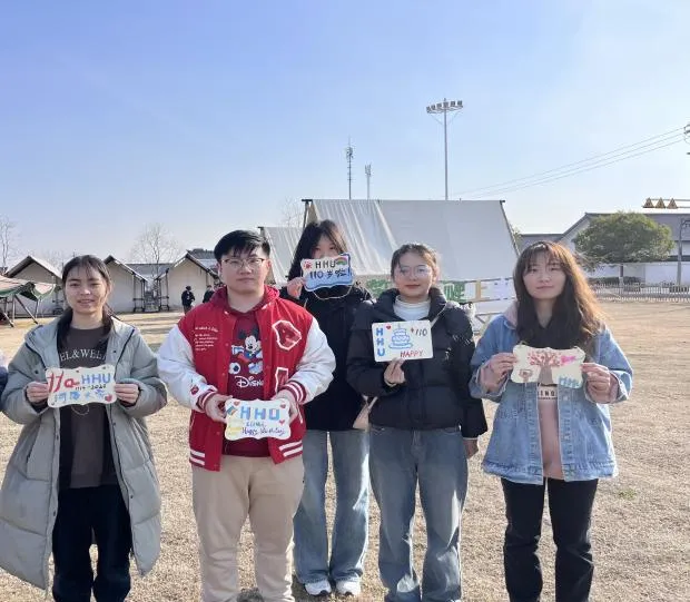 “让青春与鲜花共绽,愿母校同绿树长青”“以金融活水润泽绿色发展“祝HHU110周年快乐”......活动尾声,党员们在亲手绘制的树牌上写下对学校的真挚祝福。