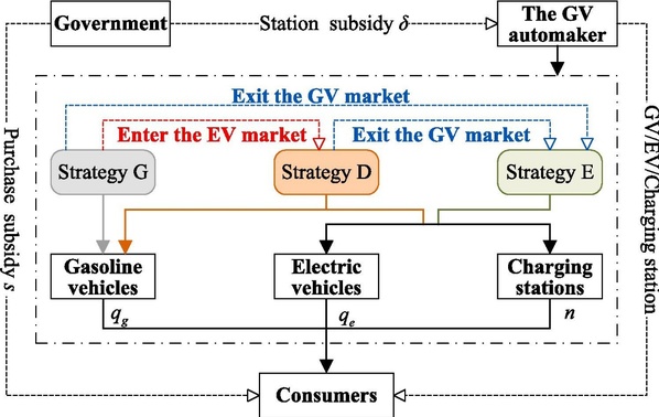 随着电动汽车(EV)产业的持续高速发展,传统燃油汽车(GV)制造商也纷纷踏上电动化转型之路。大量研究与实践表明,EV推广面临的主要障碍在于其高昂的购买价格以及充电基础设施的不足,这不仅影响消费者的采纳行为,也深刻影响汽车制造商的战略部署。据Oliver Wyman的数据,目前EV的生产成本约比GV高出45%,尽管预计到2030年这一成本差距将缩小至约9%,但短期内的成本劣势依然显著。为了缓解消费者对续航里程的顾虑,制造商还需投入大量资源建设充电网络,这一投入在初期往往难以形成规模经济。可见,高成本与配套设施不足削弱了EV相对于GV的市场竞争力,尤其对那些在GV制造方面具备成本优势的传统车企而言,电动化转型面临严峻挑战。为缓解上述问题,各国政府正积极推出多项激励措施以提升EV的市场吸引力,主要包括:向消费者提供购车补贴,或向制造商提供充电站建设补贴,以改善充电基础设施。尽管现有文献已广泛关注购车补贴与充电补贴对EV采用率的促进作用,但关于不同补贴类型如何影响传统GV制造商电动化战略的研究仍相对不足,存在显著研究空白。