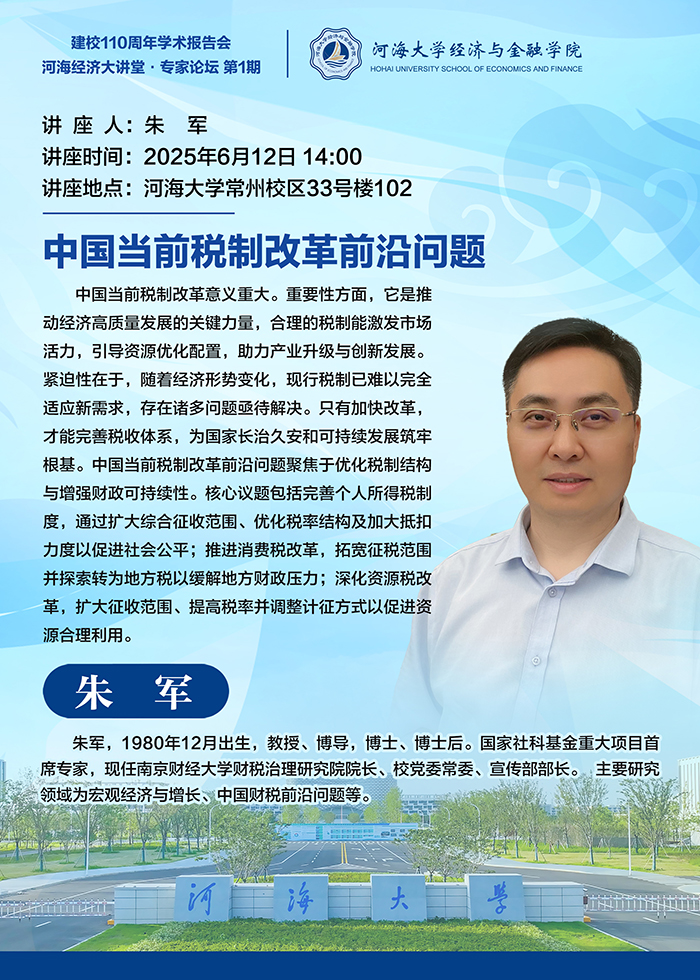 河海经济大讲堂·专家论坛 第1期:中国当前税制改革前沿问题